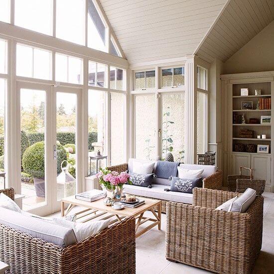 So if you’re picking a new sofa, make sure you avoid materials that fade easily, like cotton. It’s also sensible to stay away from materials that get hot when the sun shines on them, like dark leather. Rattan and wicker are really popular conservatory furniture materials, as they can cope with varying temperatures and large amounts of sunlight.